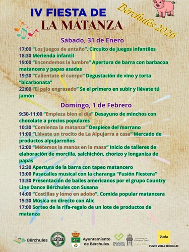 La IV Fiesta de la Matanza de Bérchules llenará de vida este fin de semana las calles de este pueblo alpujarreño, que volverá a rendir homenaje a una de sus tradiciones más queridas. Durante el sábado 31 de enero y el domingo 1 de febrero, vecinos y visitantes disfrutarán de un completo programa de actividades donde la gastronomía y la convivencia serán protagonistas. Esta cita, ya consolidada en el calendario festivo, refuerza la identidad cultural y gastronómica del municipio y de toda la comarca.