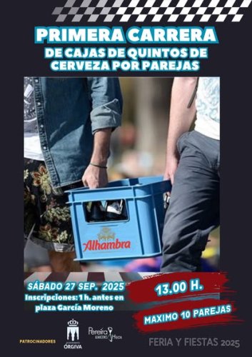 LA CARRERA DE QUINTOS por parejas. Una actividad pensada para la diversión, la originalidad y el buen humor, que sin duda se convertirá en uno de los momentos más co-mentados de la feria. ¿Quién se atreve a probar suerte y disfrutar de esta nueva experiencia?