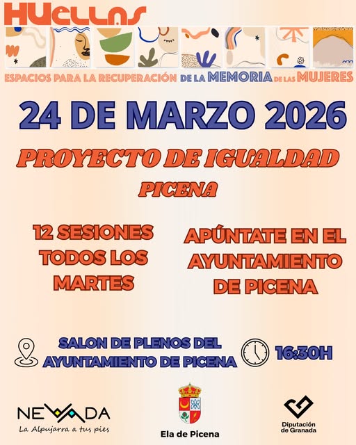 El Ayuntamiento de Picena acogerá el próximo 24 de marzo la actividad “Igualdad 2026 Huellas Picena”, una iniciativa que busca reconocer el papel invisible de las mujeres en la historia local. Este proyecto forma parte de los programas de Concertación 2026-2027 impulsados por la Diputación de Granada y pretende, sobre todo, dar voz a las mujeres que construyeron la identidad de su pueblo con valentía y esfuerzo.