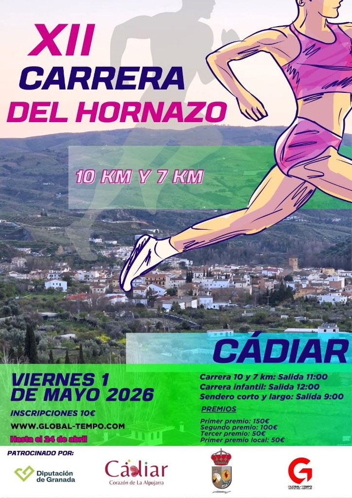Las inscripciones para la Carrera del Hornazo en Cádiar se han abierto con un coste de 10 euros. Sin embargo, el plazo finalizó el pasado 24 de abril. Aun así, el evento espera una amplia participación.