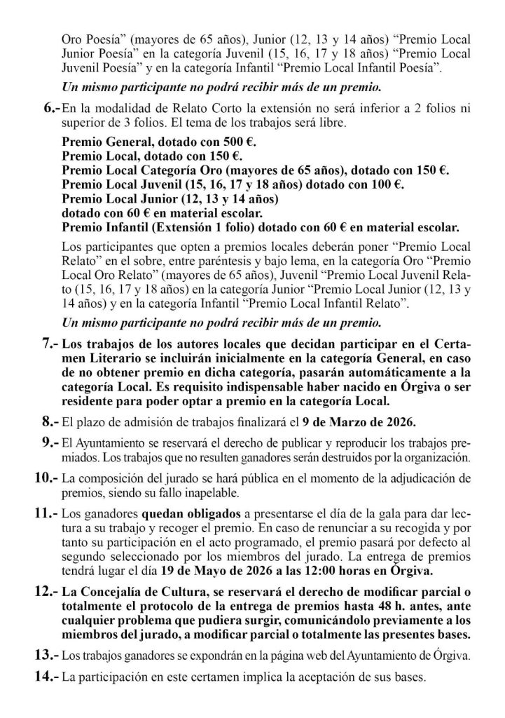 LocalPoesía / Relato corto150 €Nacidos o residentes en Órgiva